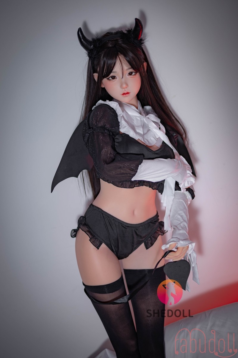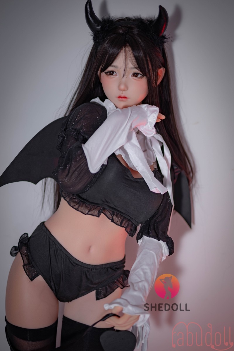 頭に角が生えたかわいいラブドール。そのまんまるな顔は、まるでお人形のように愛らしく、見つめるたびに心が癒されます。ダッチワイフが身にまとっているのは、シックな黒色のストッキング。その絶妙な透け感が、セックスドールの肌の白さを一層引き立てます。ストッキングの上には、ふんわりとした小さなお腹がちらりと見え、その無防備さがまた可愛らしさを引き出しています。