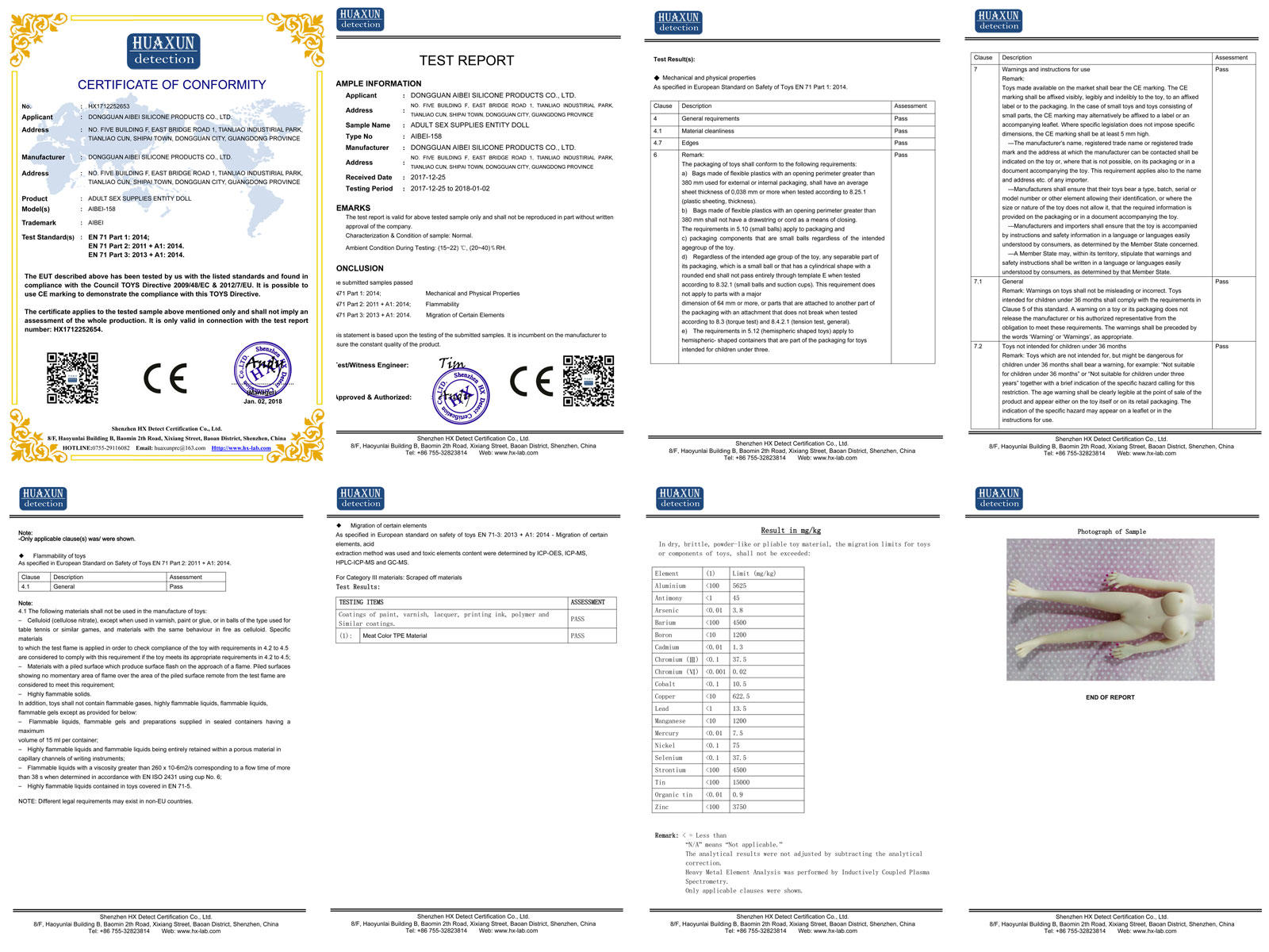 rabudoll.comではTPEラブドールの認証書、製品安全性の書類を公開しています。安心してご利用ください。